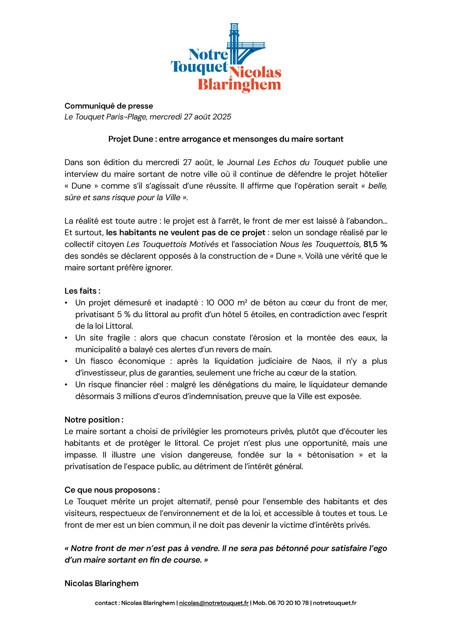 Retrouvez ici la voix de notre campagne : les prises de position officielles de Notre Touquet, pour construire ensemble l’avenir de notre commune.